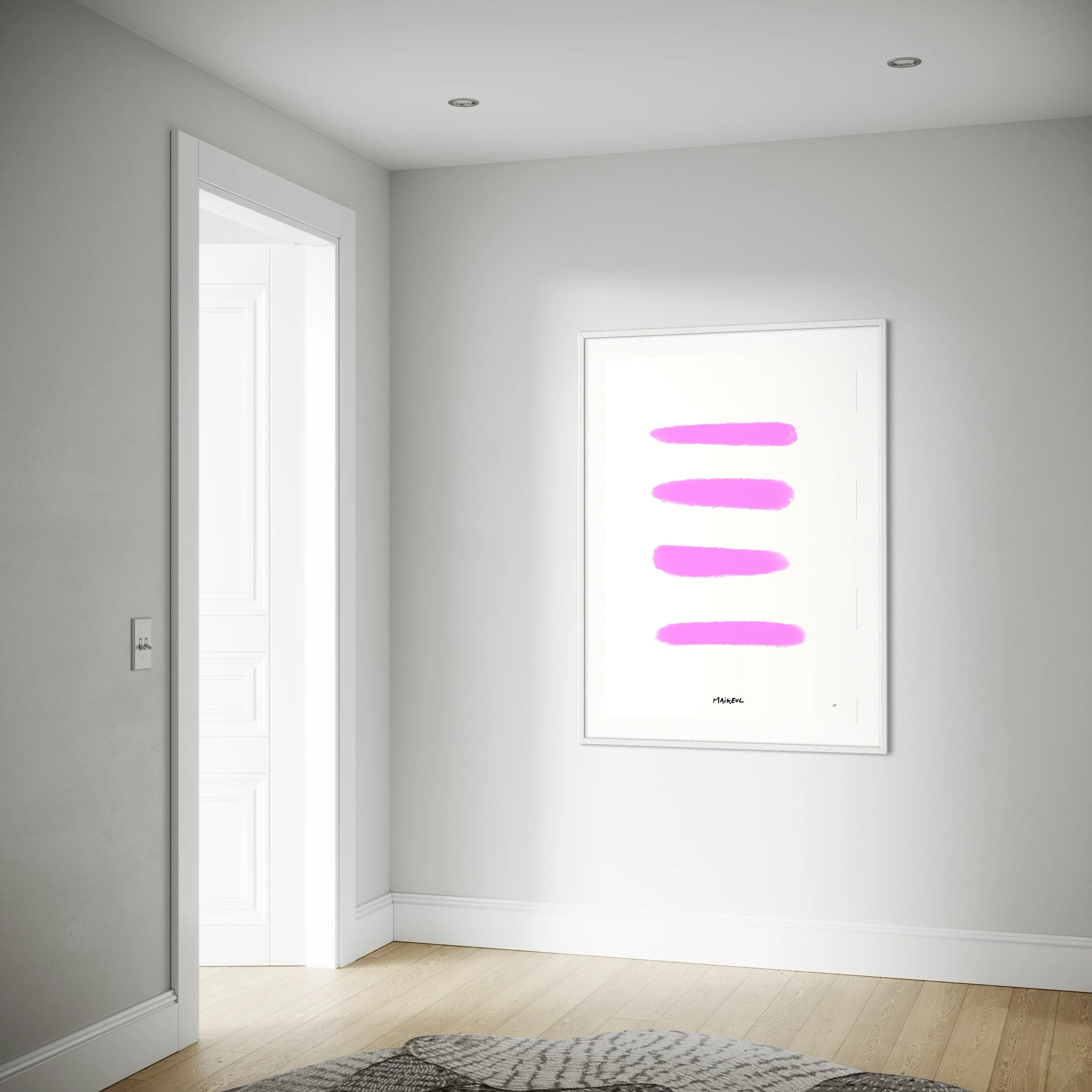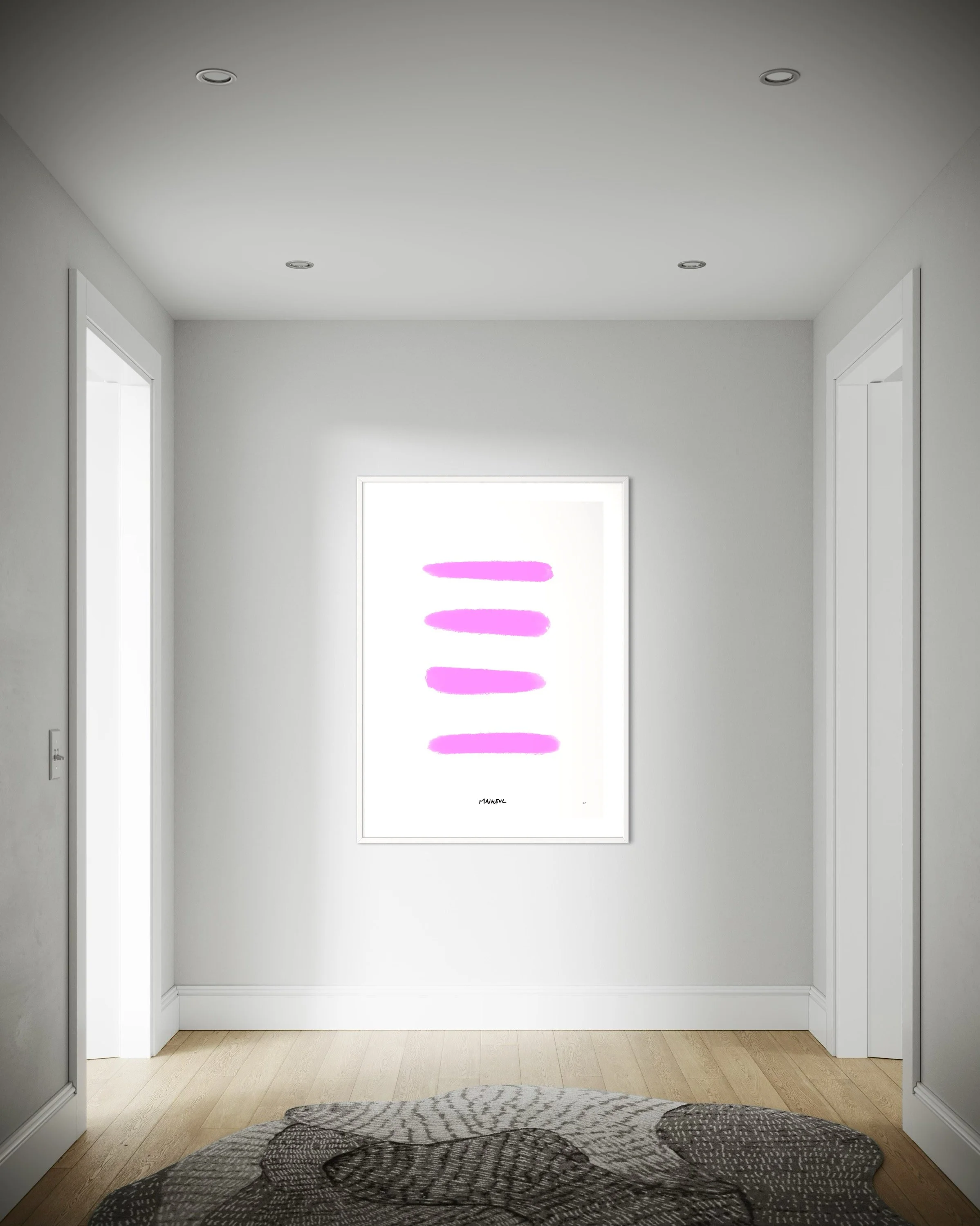 Immerse yourself in the minimalist and vibrant world of Maikeul with Rose Bonbon. This refined artwork features four bold pink brushstrokes, evoking both softness and energy.